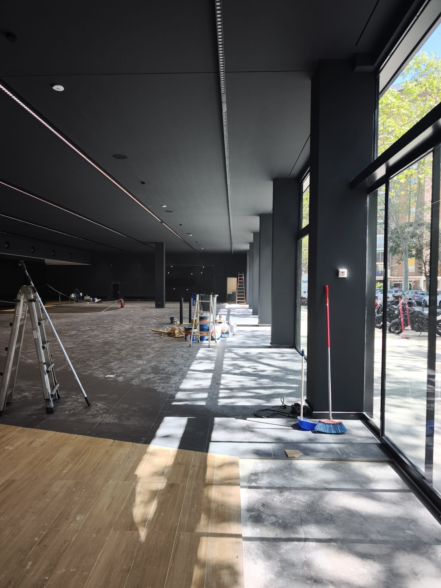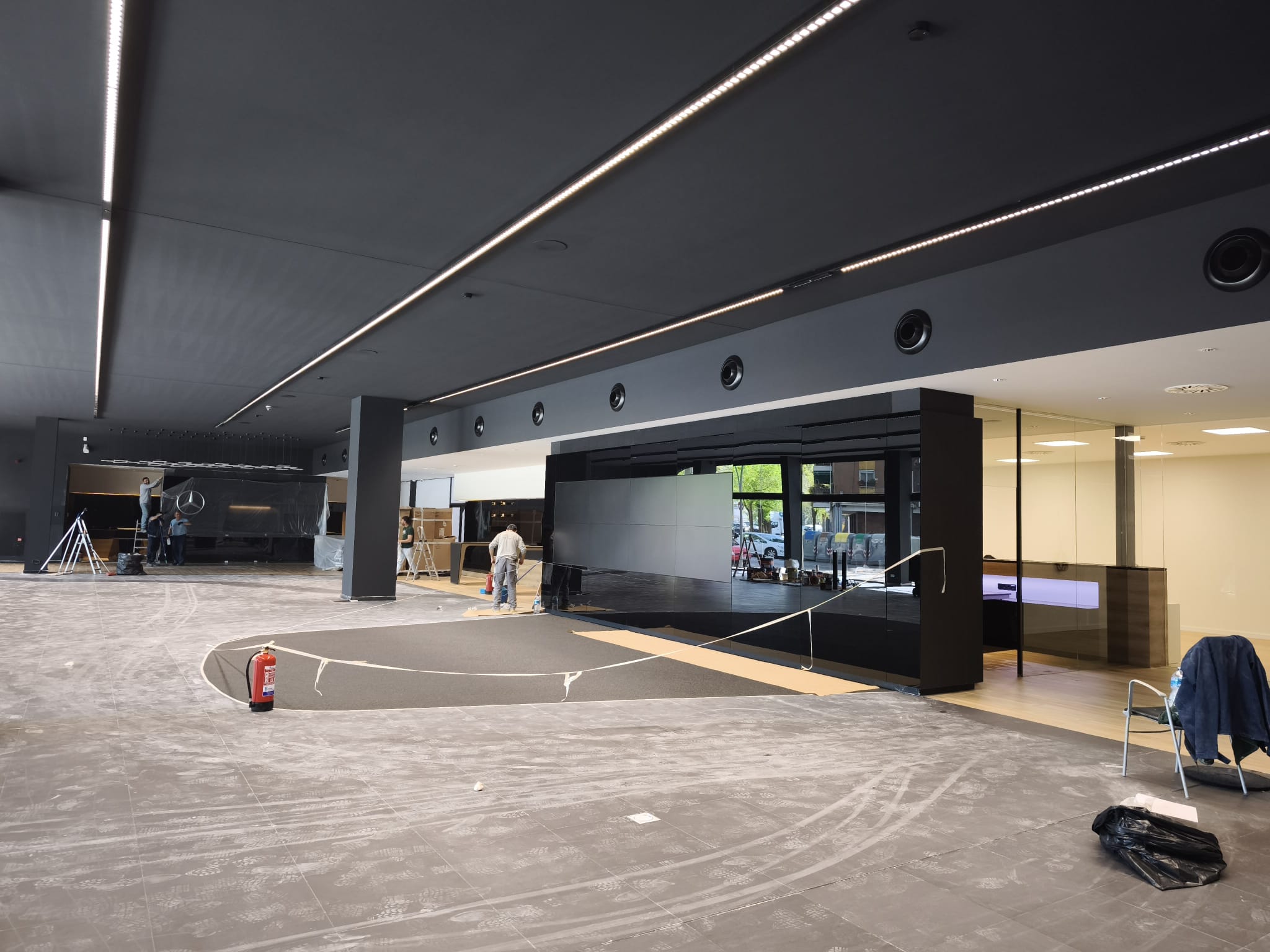 La actuación principal ha incluido la demolición de las medianeras, la apertura de las naves para dejar el espacio diáfano y el derribo de estructuras de hormigón. Para asegurar la estabilidad del edificio, se han ejecutado trabajos de apeo en la fachada exterior, además de la construcción de nuevas subestructuras metálicas para soportar las instalaciones.